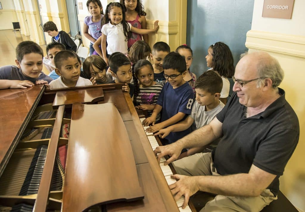 The third tier of Moving To Learn’s educational structure consists of ready access to professional performance. Towards this end, AD&M’s professional contemporary dance company, AD&M Performance Group, presents distinguished performances of original ballets to school children in up-close and informal settings such as gymnasiums or other large multi-purpose spaces as well as theaters, featuring live music. A pre- and post-performance question and answer segment is included as a way to engage the students in the creative process between choreographer and composer, and to satisfy kids’ curiosity about what it takes to become a dancer.